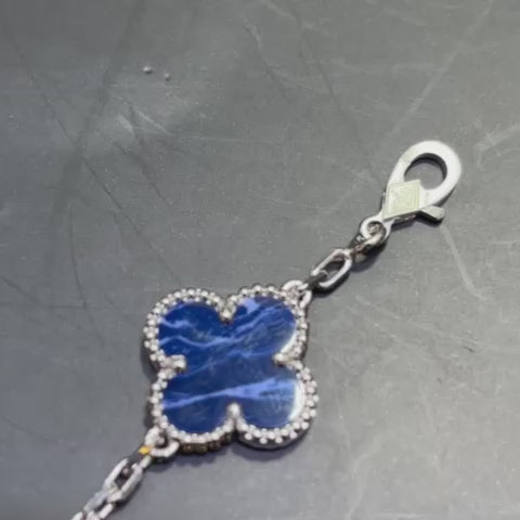 Check out our 18k White Gold Lapis Lazuli Clover Bracelet. Made with 18k White Gold and Real Lapis Lazuli Stones. Available in 8. All natural stones. Call/text for more😇💎🏝