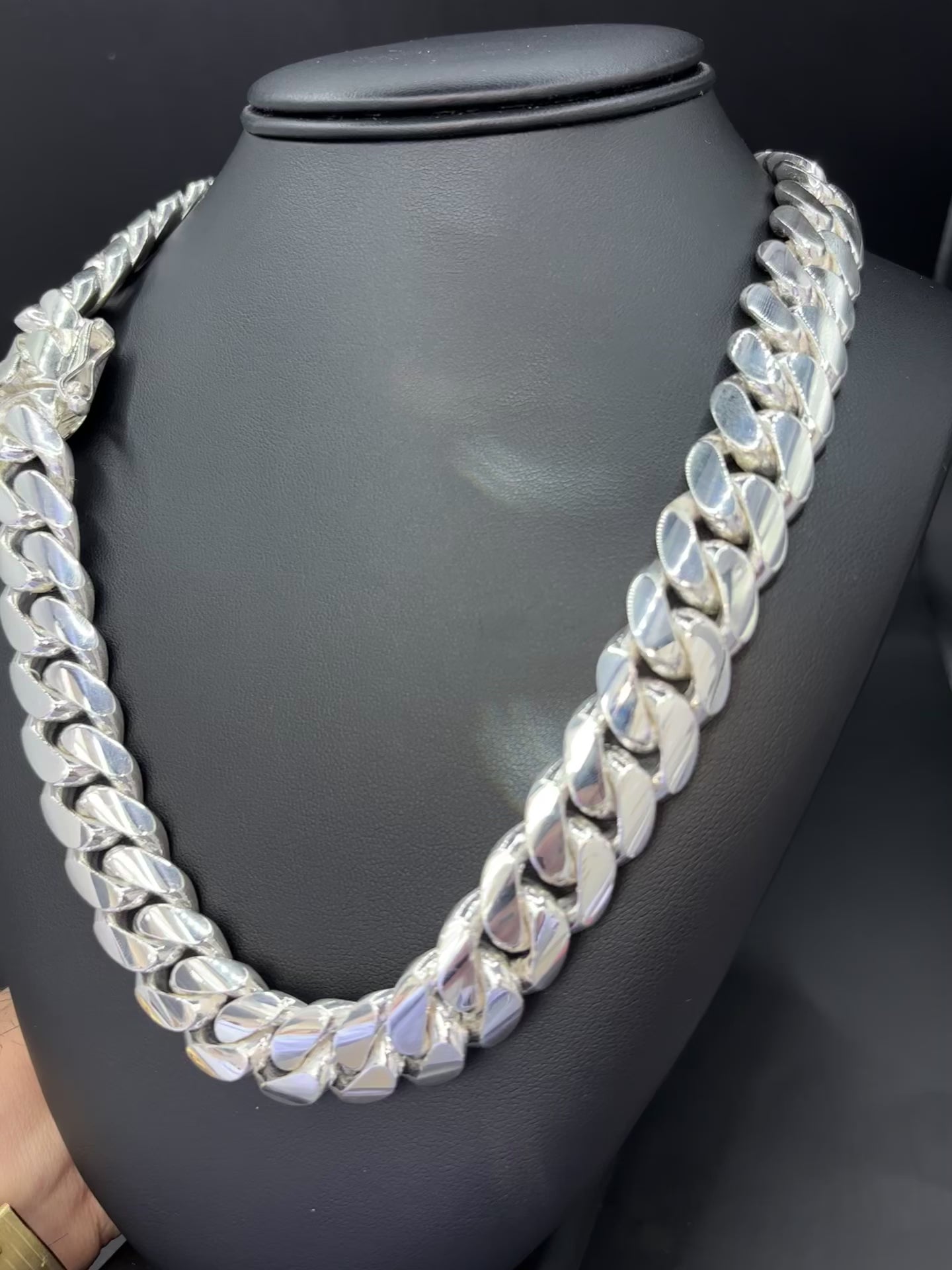 18MM HANDMADE SILVER MIAMI CUBAN LINK CHAIN .999 PURE. Made right here on Miami Beach and made to order. Best Prices per gram! Pure Silver. Crazy chain. Call/text for more๐๐๐๐ฆพ