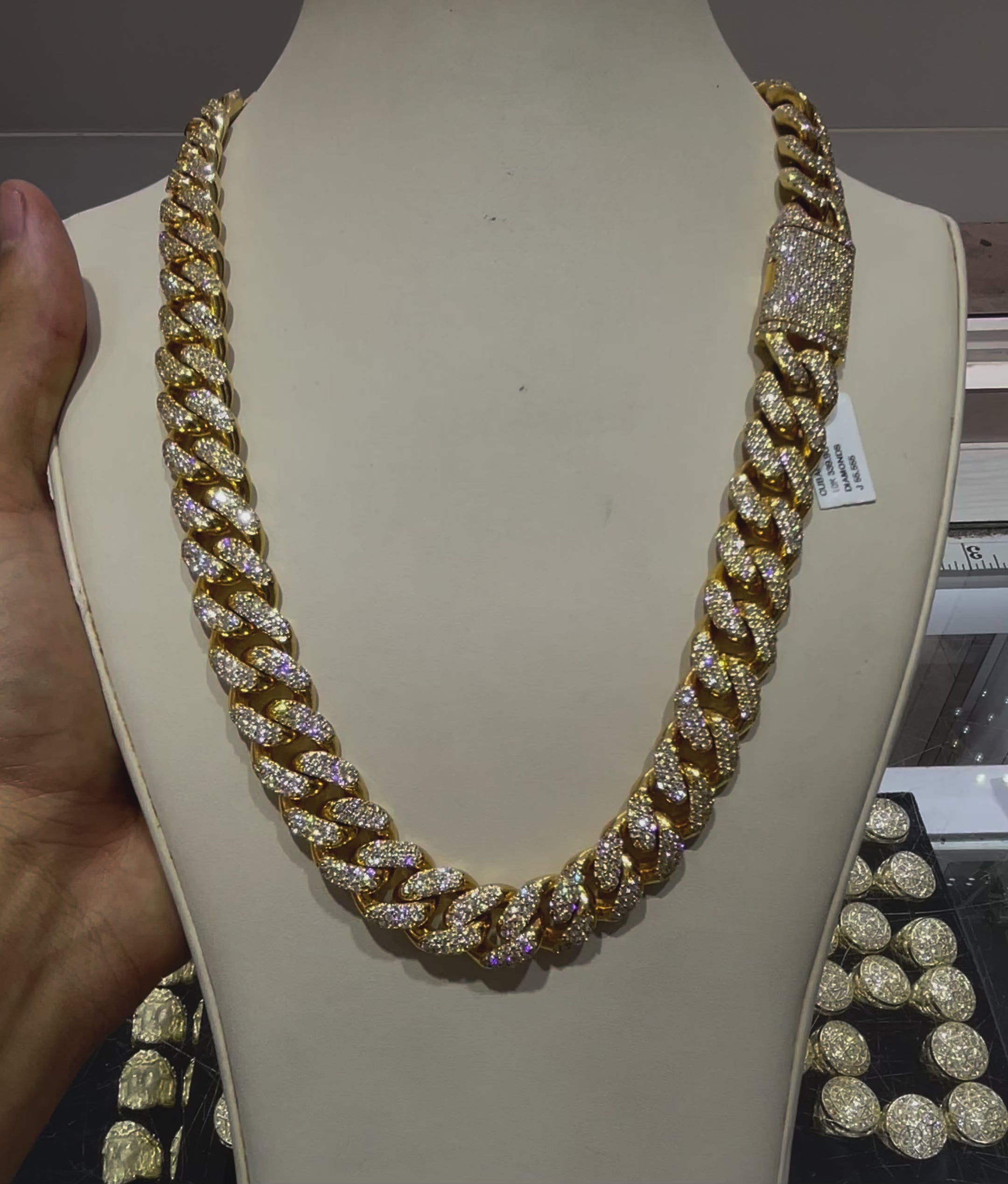 10k Yellow Gold Bust Down Cuban Link Chain made with 15+ Cts VS1 Natural Diamonds and 300-400 Grams. Call/text for more💎🏝😇