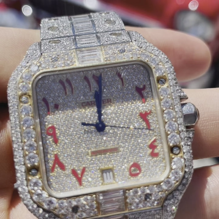 41 mm Cartier Santos xl “iced Bust down” Baguettes 32cts Natural Diamonds