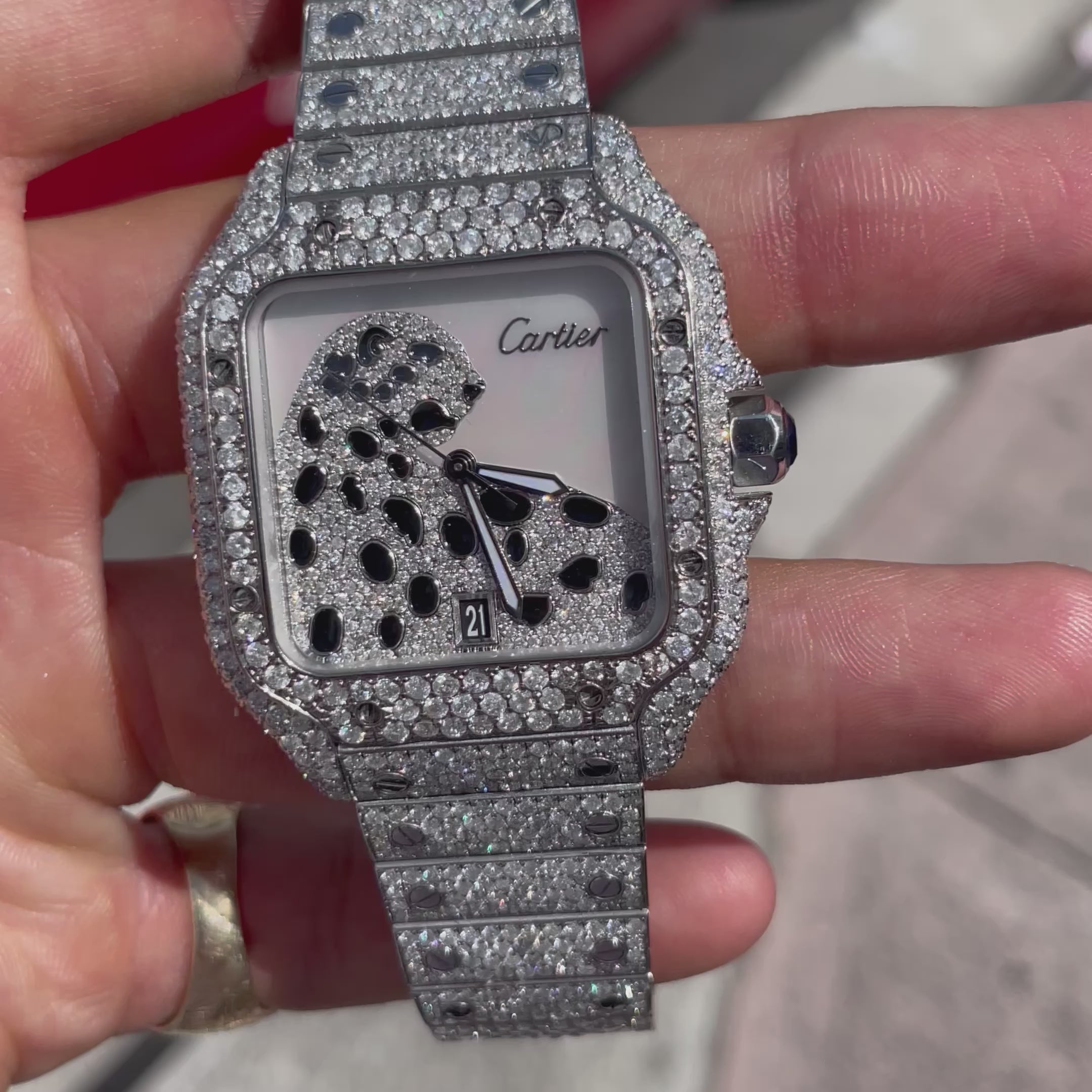 41MM CARTIER SANTOS ICED OUT | PANTHÈRE DIAMOND DIAL
