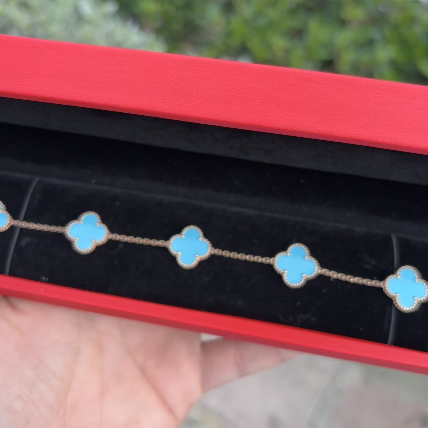 Our 14k Turquoise Rose Gold Blue Clover Bracelet comes with a free Appraisal and RDP Jewelry Box๐๐.