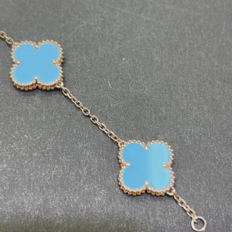 14k Turquoise Rose Gold Blue Clover Bracelet