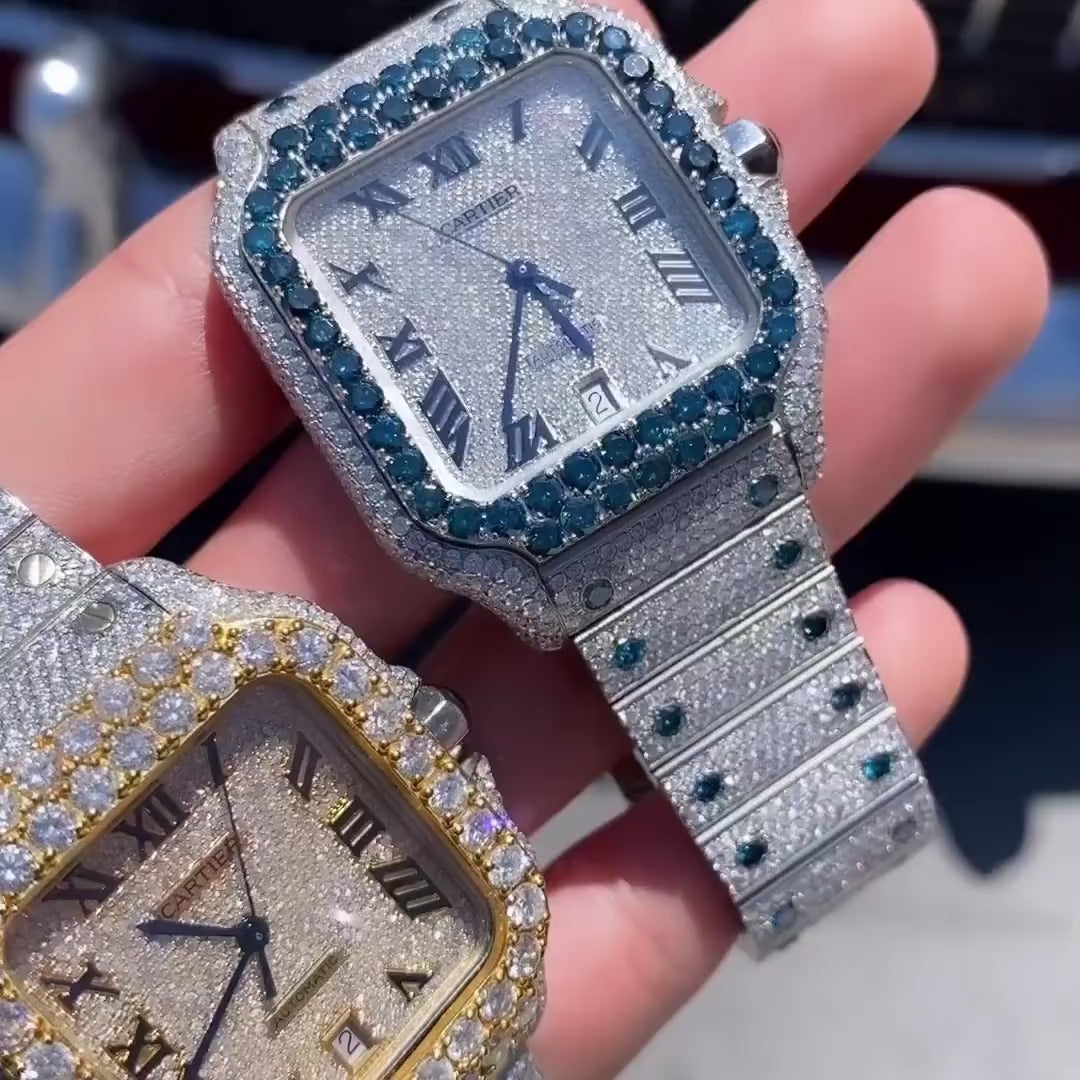 EMERALD ICED OUT CARTIER WATCH | BRAND NEW | 18 cts | White