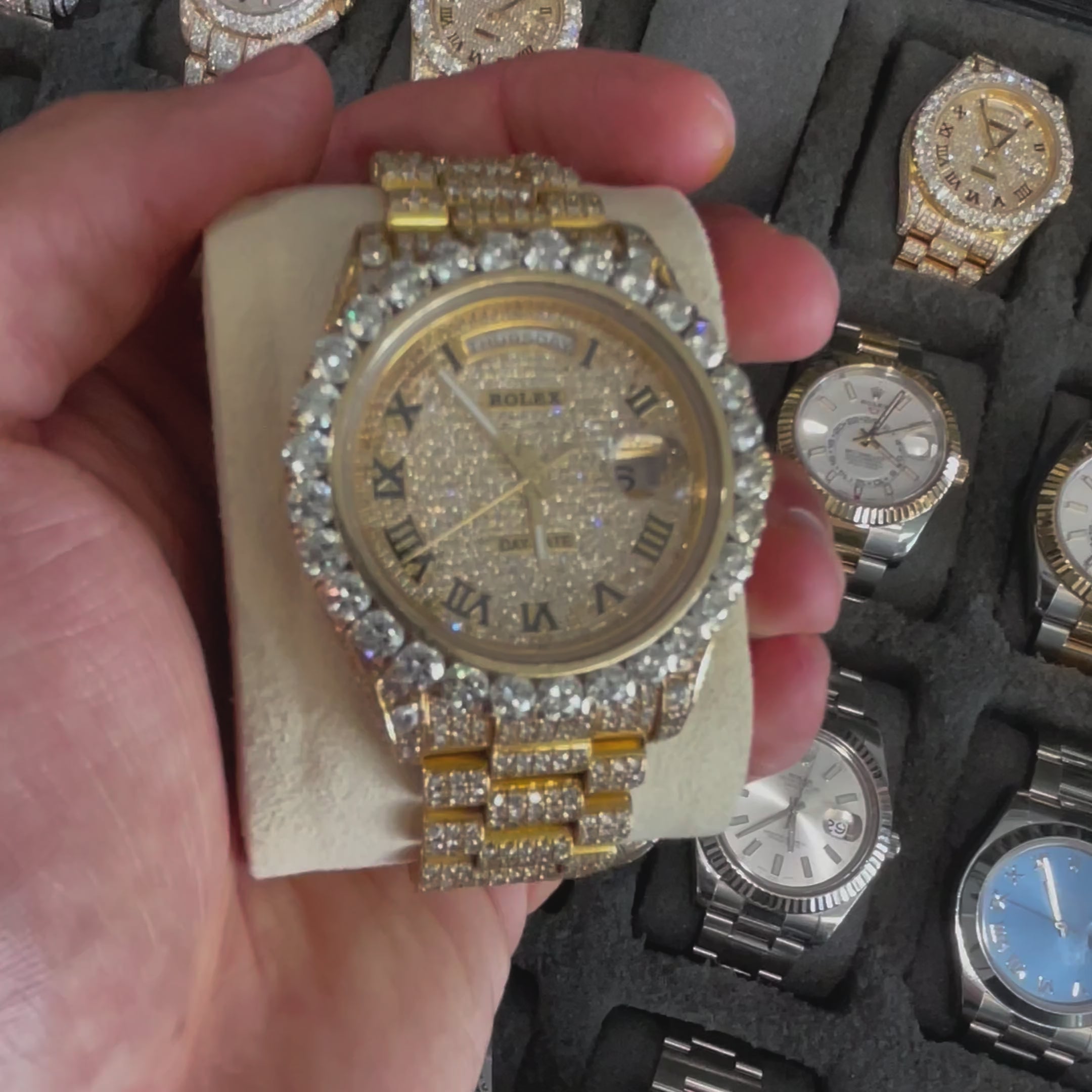 41mm Iced Out Yellow Gold Rolex Day Date II 18k
