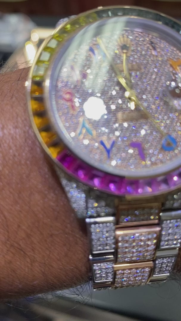 36mm Rolex Datejust βIced Bustdown β Oysterband Rainbow π 15 cts .t.w. Vs1 natural π