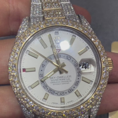 Super Iced 42mm Rolex "Bust Down" Sky Dweller with 37 cts of Natural Vs1 Diamonds. Two Tone with Oysterband. Big boy watch💵😮💨. Call/text for more🏝💎📲